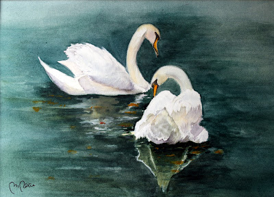 Acuarela sobre una foto que les tomé a los cisnes en el parque de Mª Luisa. Con ella participo en la próxima exposición de primavera que realizamos cada año la Agrupación de Acuarelistas de Sevilla.